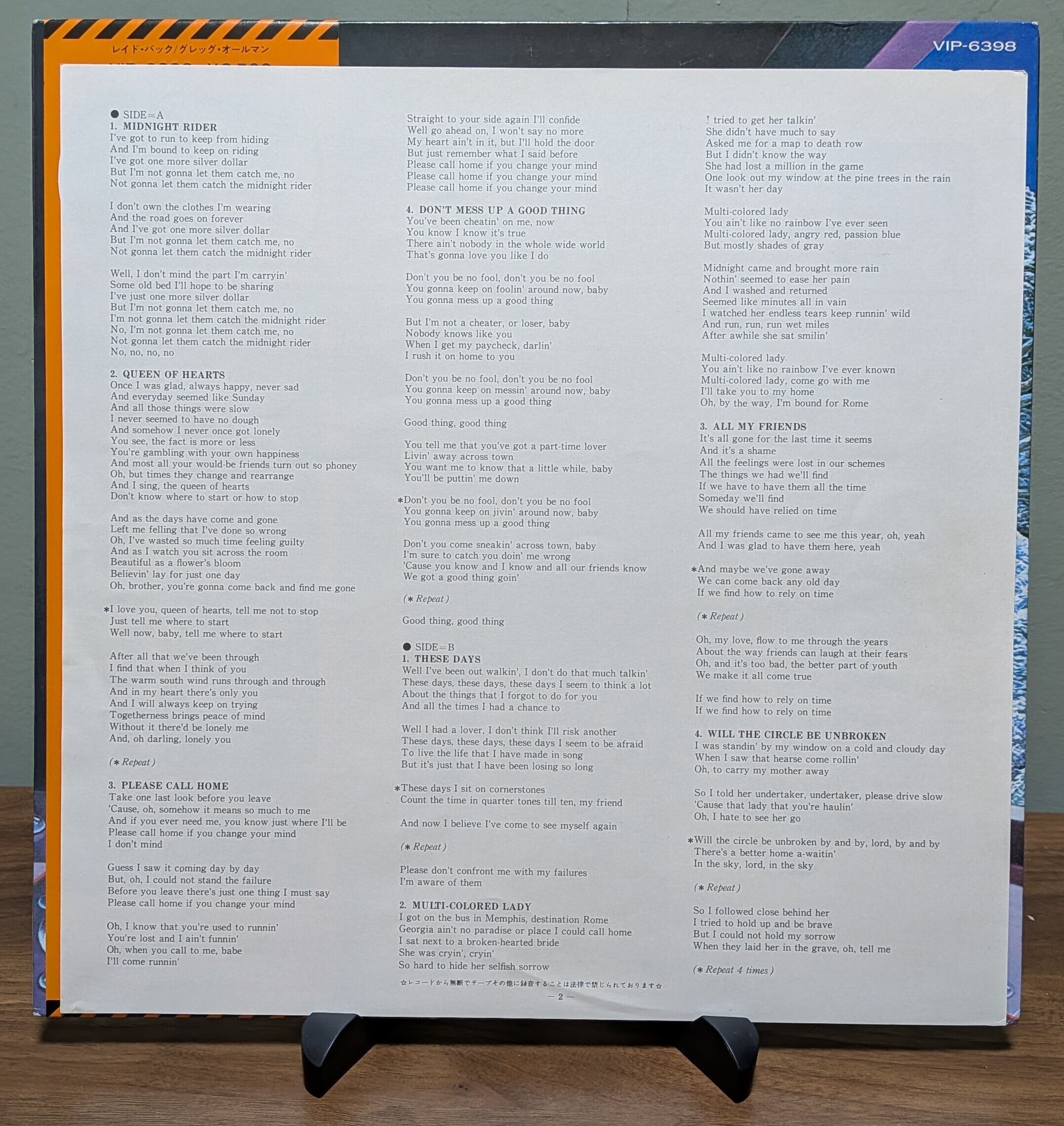 Capricorn Records / VIP-6398 / 1977 / Japan / LP